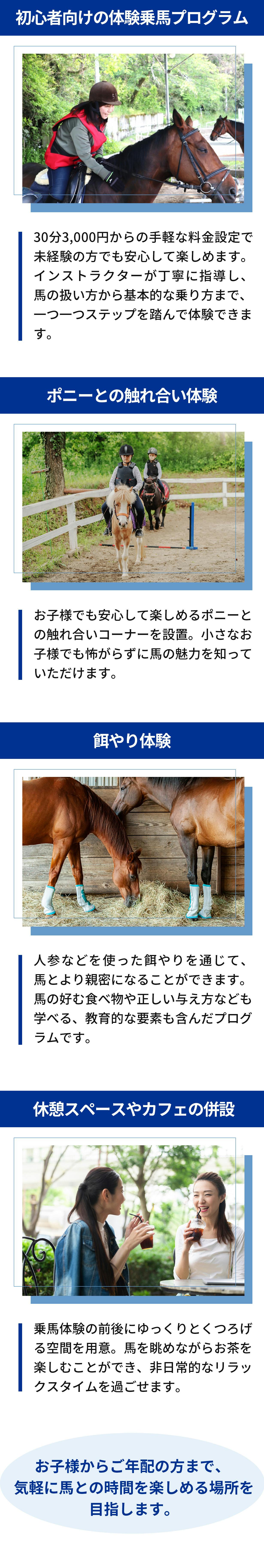 このプロジェクトで私たちがつくりたいのは、 単なる乗馬施設ではありません。