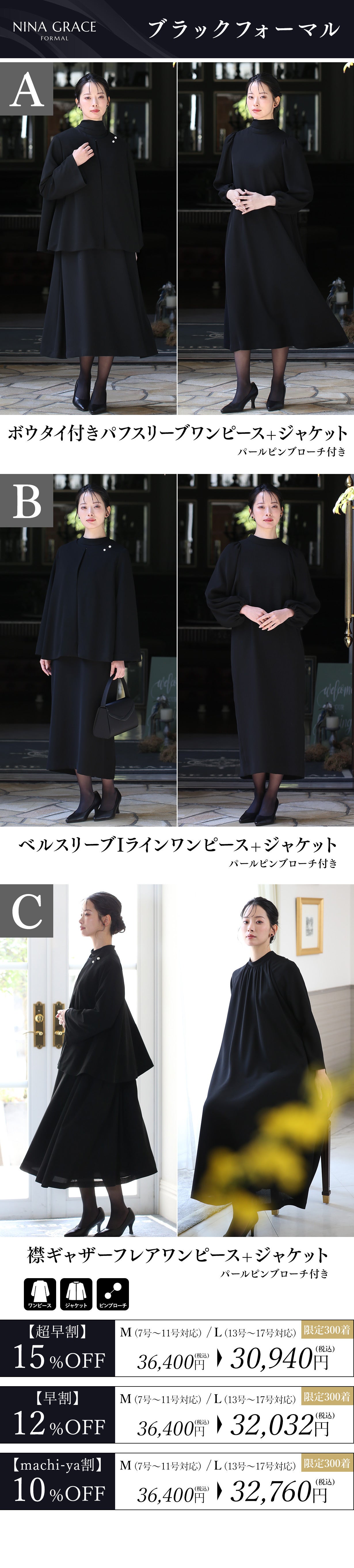 ※こちらの「C」タイプはワンピースとジャケットの生地が異なるため、黒の色味が若干異なります。
