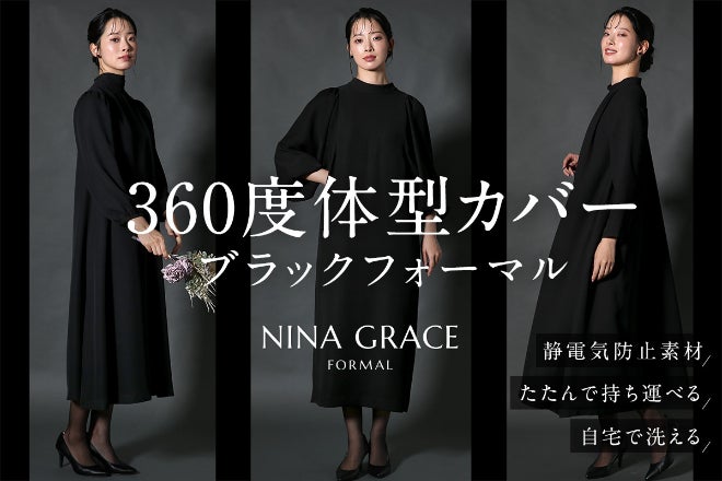 体型のコンプレックスを解消し、ありのままの自分を美しく見せてくれる。身体のラインを拾わない独自のパターン技術で、どんな体型の方でも細見えする。究極の美シルエットの「360度体型カバーするブラックフォーマル」が誕生しました。