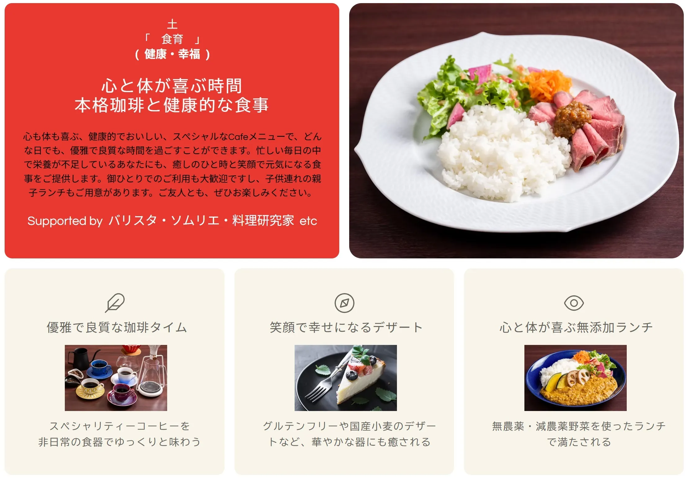 伝統製法で丁寧に作られた調味料や農薬の使用を控えた野菜などを食材に使い、心も体も満たされる食事を目指しており、お蔭様でお客様からたくさんの喜びの声を頂いています。食材費や輸送費や人件費などあらゆるものの値上げが続いている現在ですが「食べたもので身体はつくられる」をモットーにこれからもこだわりたいと思います。今後は、生産者の方々との接点がつくれるようなイベントも計画していきます。