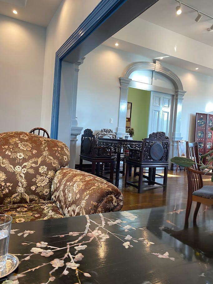 もともとイギリス人によって設計された西洋風の邸宅ですが、最後のオーナーである門兆鴻氏のインテリアを引き継いでいるため、オリエンタルな雰囲気が残っています。この外観と内装のアンバランスがこの邸宅の魅力を際立たせています。お庭にはテラス席もあり、爽やかな風を感じながらゆったりと過ごせますよ。