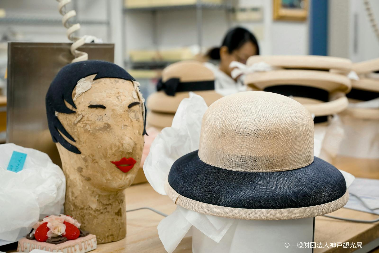 職人技が光る帽子は、神戸のモダンなファッション文化を象徴しています。その技術力とデザインは皇室からも高く評価され、皇后雅子さまをはじめ御用達として知られています。
