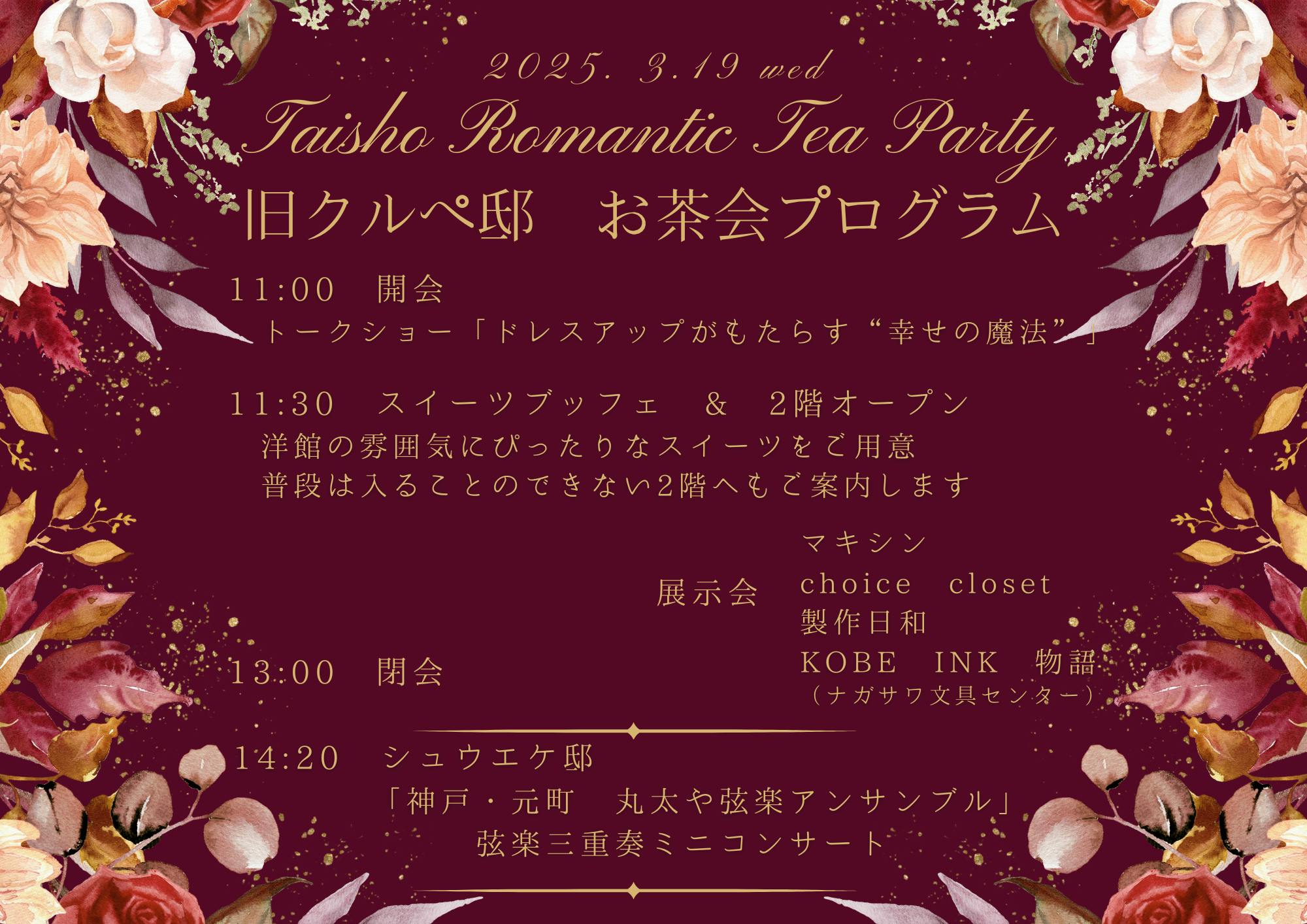 みなさま、ごきげんよう。いよいよ3月19日(水) 「大正ロマンお茶会」 が迫ってまいりました!