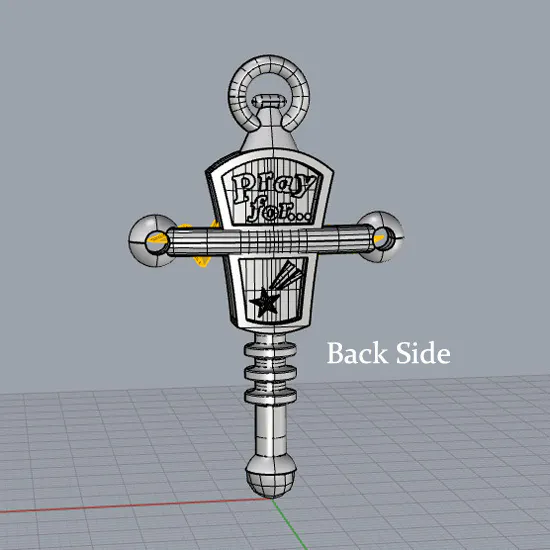 隠れてしまう背面には、星への祈りを浮き彫りで表現しました。