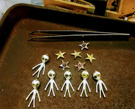 ひとつひとつ、愛用の工具で一体成型を施します。