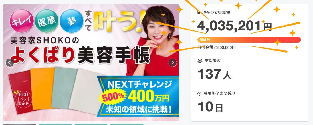 【発送完了&発売が開始しました】皆さんにご支援いただいた「よくばり美容手帳」がついに完成し、先月2/22のイベントで参加された皆様にお渡しすることができました。またその後、手帳のみのご支援の方にも発送を完了いたしました!ここまで来れたのも、ご支援をくださった皆様のおかげです。本当にありがとうございました!今後は以下のECサイトでお買い求めいただけます▼全方位美人セレクトショップhttps://zenhoui.shop-pro.jp/この手帳を使うことで、目標を達成し、小さな成功を積み重ねた女性たちが、体調やメンタルを管理しながら「自分らしい人生」を手に入れる。体調管理や心のケアを怠らず、日々自分を磨くことが習慣化している女性が増え、「自分の力を信じられる」コミュニティが広がっていくことを目指しています。「よくばるほどに美しく!」よくばり美容手帳-VIVIDLY-を通じて、キレイも健康も夢も欲張って全部手に入れる毎日を送ってください。この手帳が、あなたの未来を変えるきっかけになりますように。