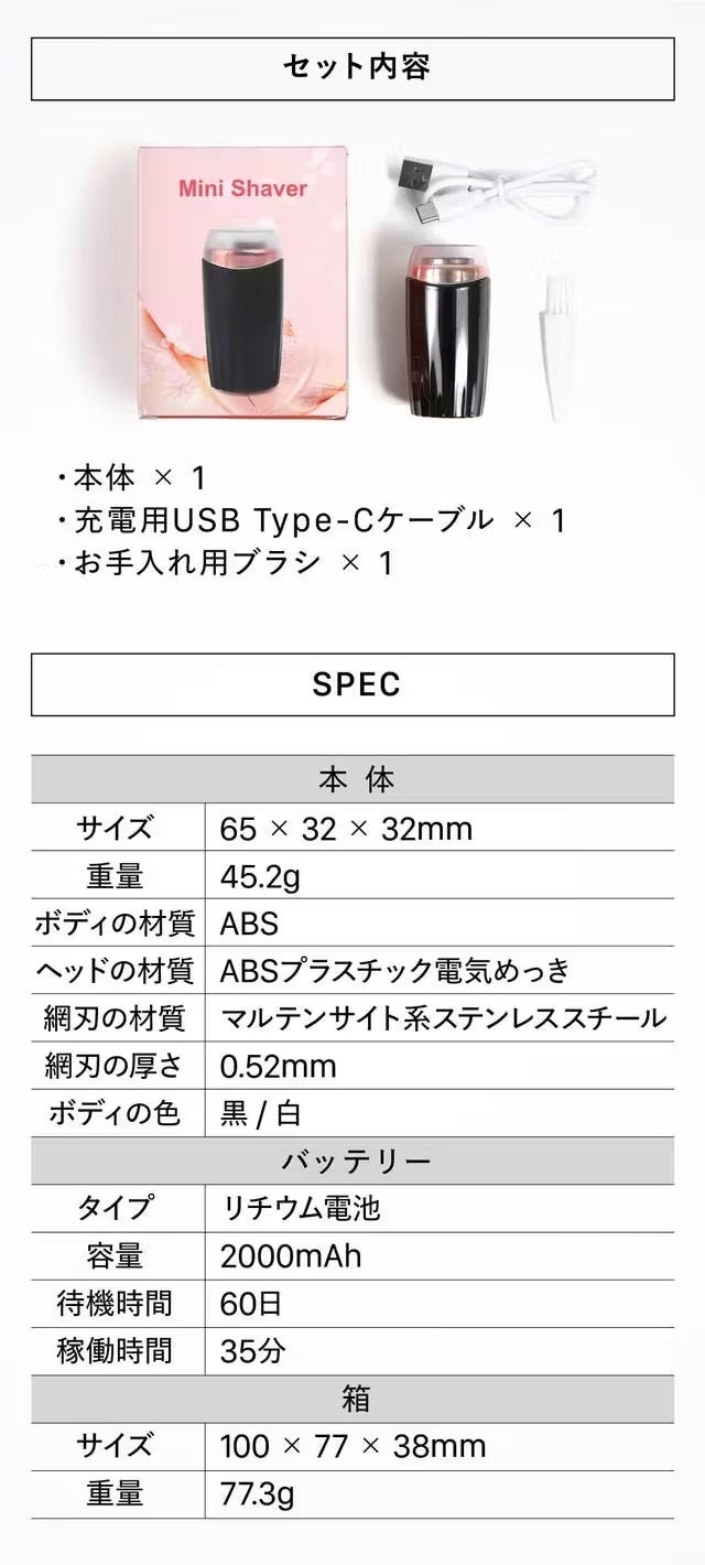 ムダ毛ケアをつい忘れがちで外出が多いあなたでも効率的に、そして快適に使える、新世代の究極コンパクトシェーバーです。