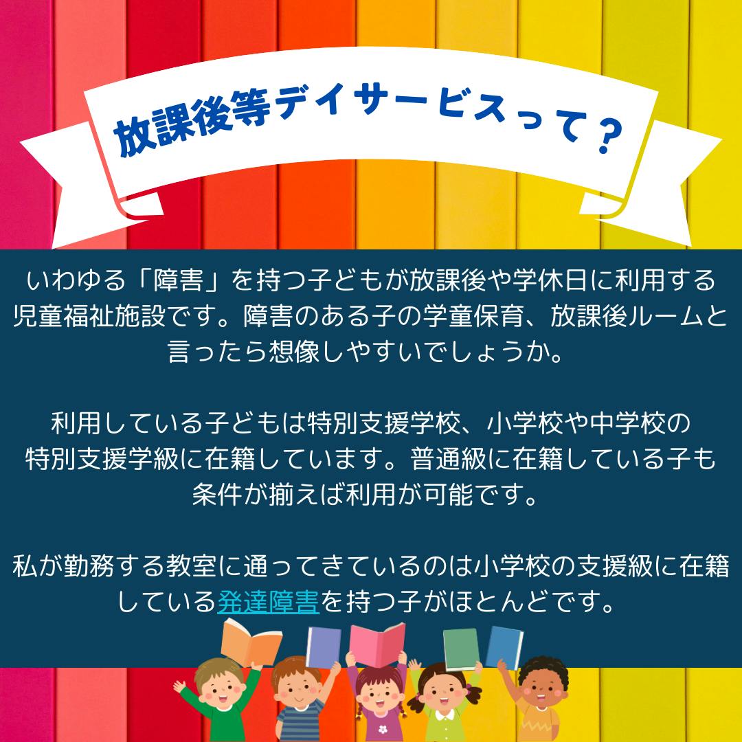皆さんは「放課後等デイサービス」という施設をご存知でしょうか?