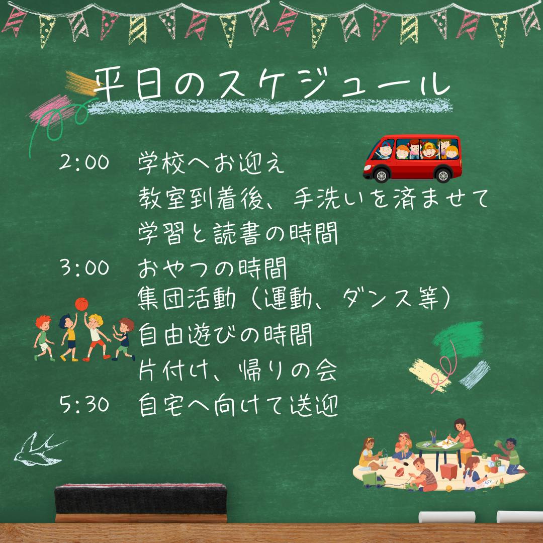 学校のある日のスケジュールと祝日や長期休みのスケジュールはそれぞれ以下の通りです。