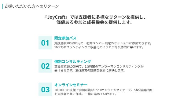 「JoyCraft」が目指すのは、先生方がSNSで自分の経験や教育への想いを発信し、信頼と影響力を築きながら、付加価値としての副収入も得られることです。