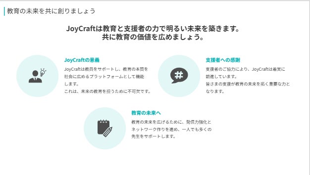 そんな先生方の「教える力」を社会に広げるために、「JoyCraft」は誕生しました。