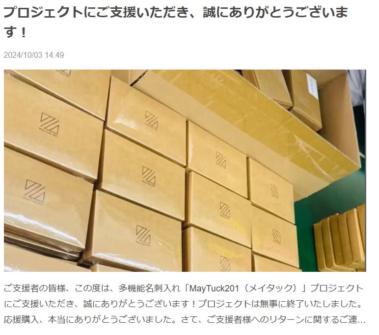 ・2025年 3月中頃:リターン発送終了予定