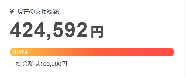 私たちのプロジェクトは、皆さまのご支援のおかげで、現在**424%**を達成しております!短期間でこれほどまで多くのご支援をいただき、驚きと感謝の気持ちでいっぱいです。本当にありがとうございます。