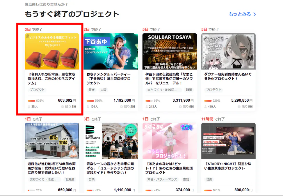 また、現在このプロジェクトはCAMPFIRE(キャンプファイヤー)のトップページ内「もうすぐ終了のプロジェクト」コーナーに掲載されています!これにより、さらに多くの方の目に触れる機会が増え、ますます注目が高まることが予想されます。