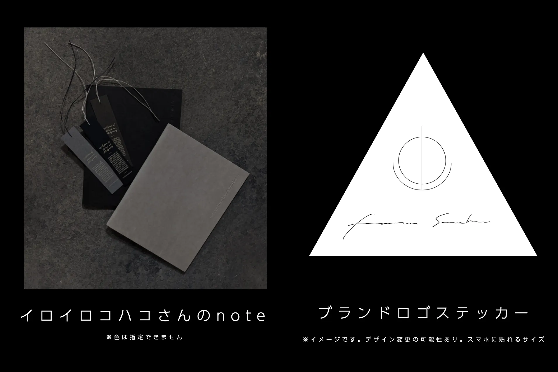 ■10,000円:パッケージの箱を作って下さっている「イロイロコハコ」さんのノート➕当ブランド「From Sunchu」のステッカーをお届け➕当ブランド「From Sanchu」ホームページにご協力者としてお名前を掲載(掲載不要な場合、ご連絡いただければ掲載致しません)