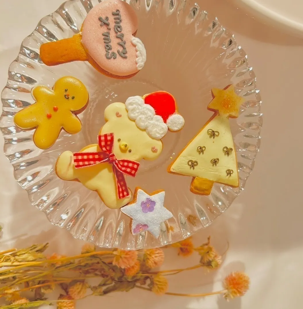 今回、クリスマスシーズンを迎えるこの時期に合わせて、ケーキに飾り付けるアイシングクッキーを考えてみました。是非この機会にクリスマスケーキを華やかに飾り付けてみてください♡