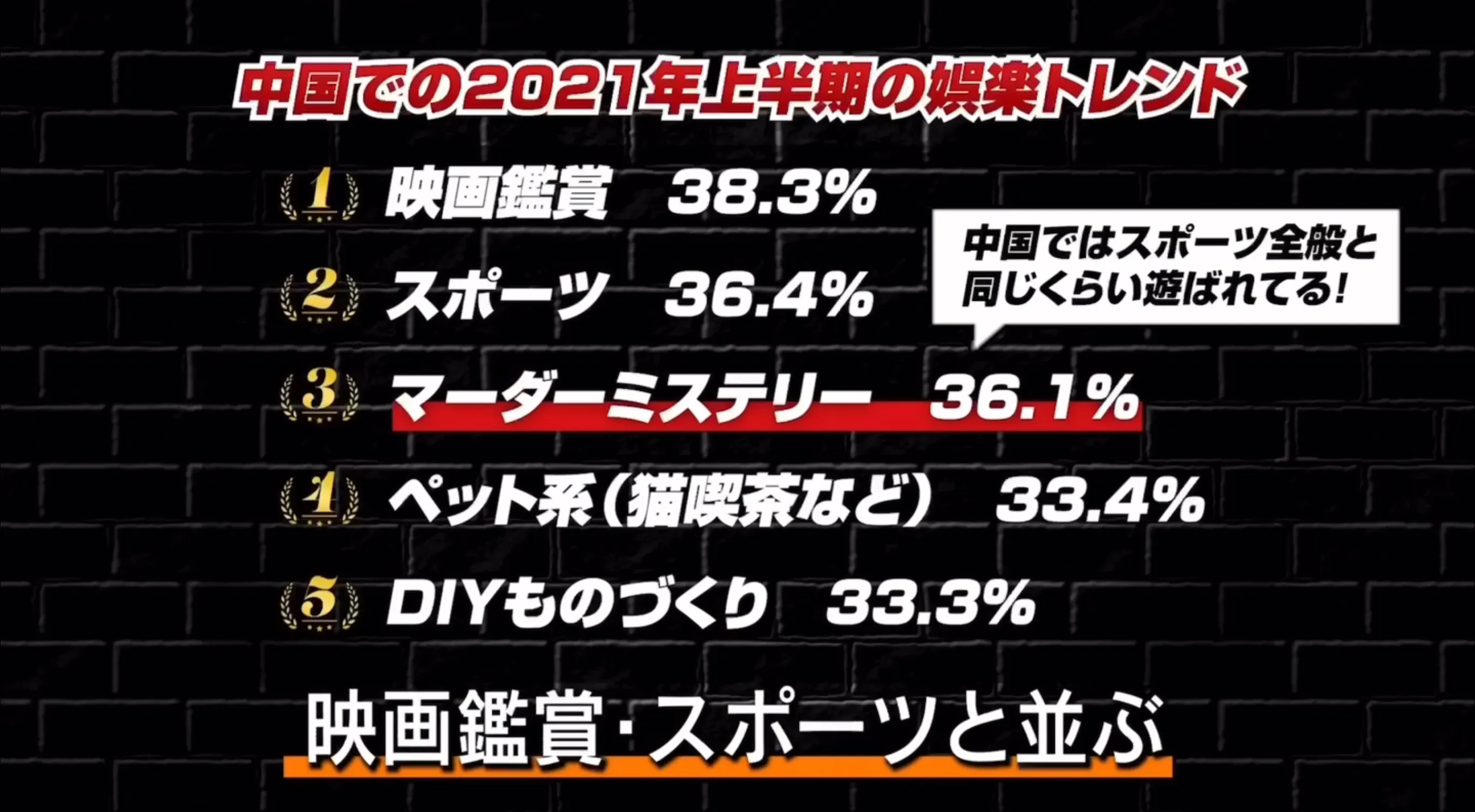中国の娯楽トレンドでは、映画鑑賞、スポーツに並ぶエンタテインメントです。