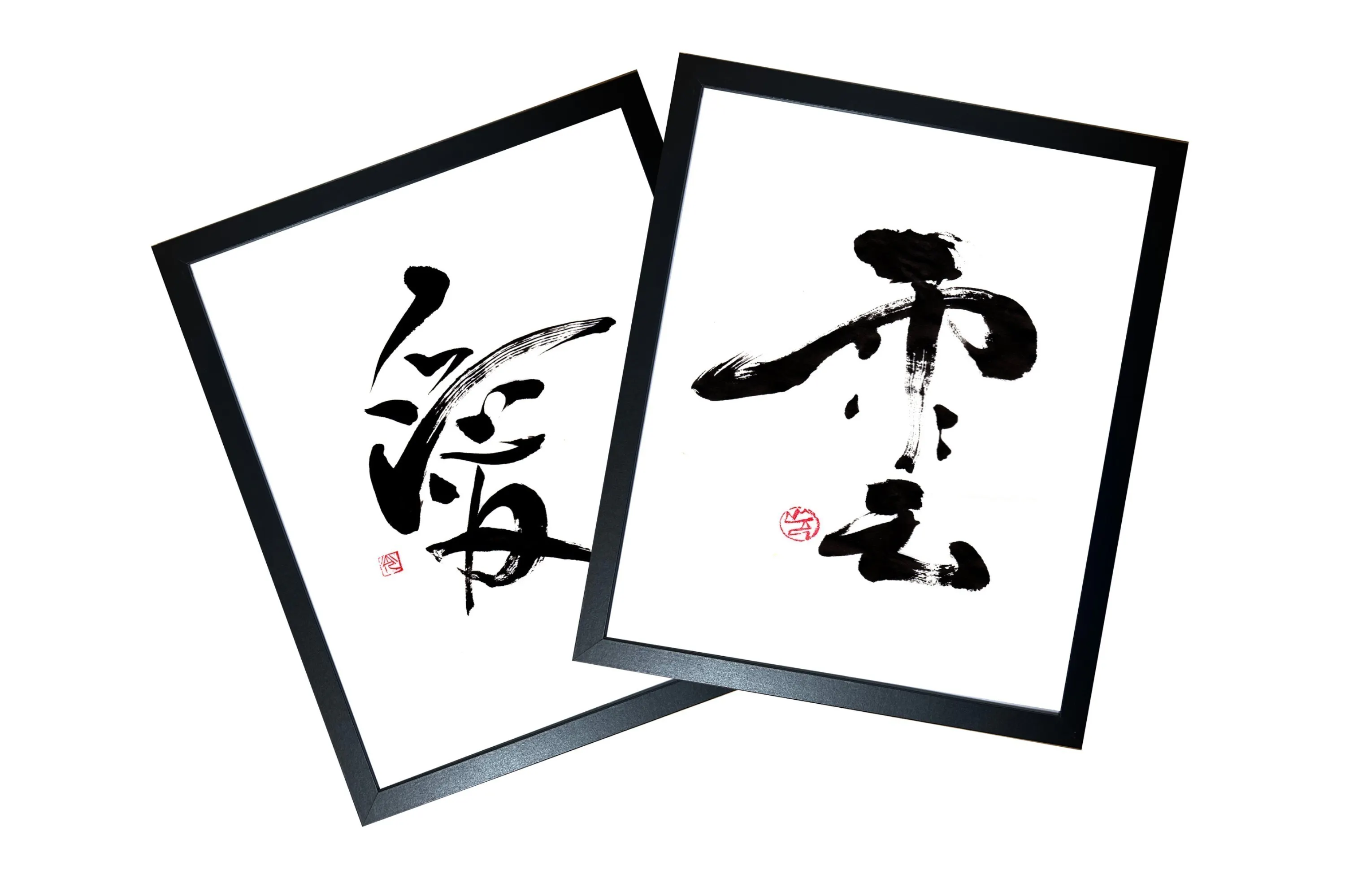 大きさは半紙に1文字書きで、額は4つ切り簡易額です。