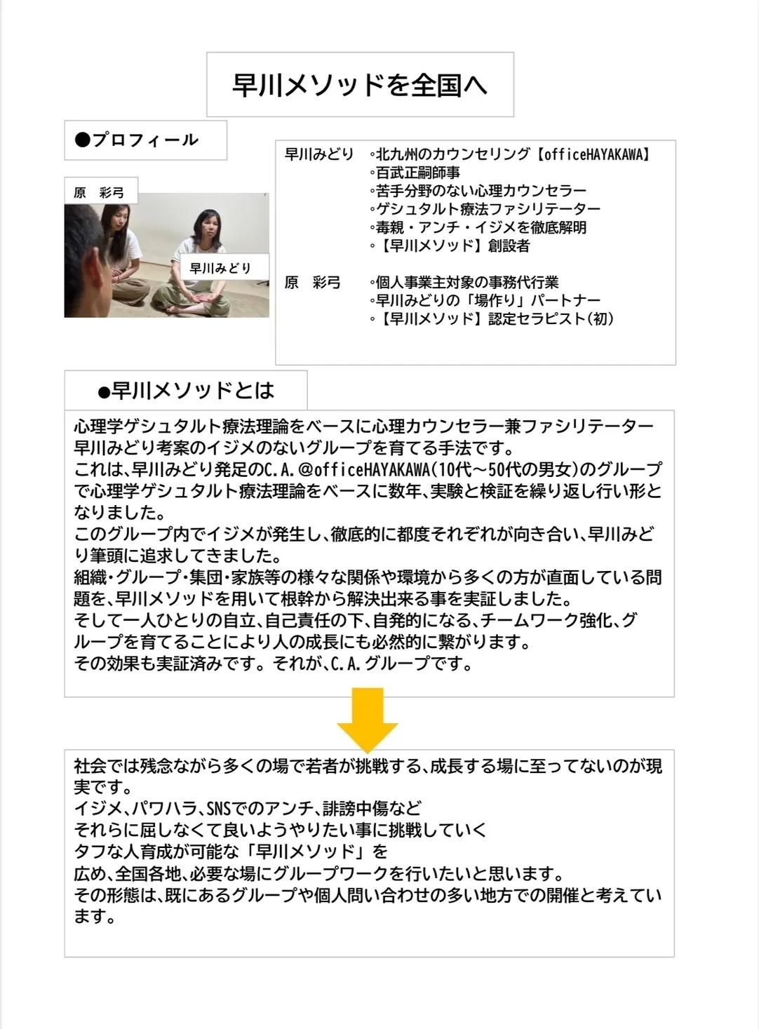 少しでも多くの人に、早川メソッドを知って体感してもらう為に、出張グループワークのハードルを下げたい。