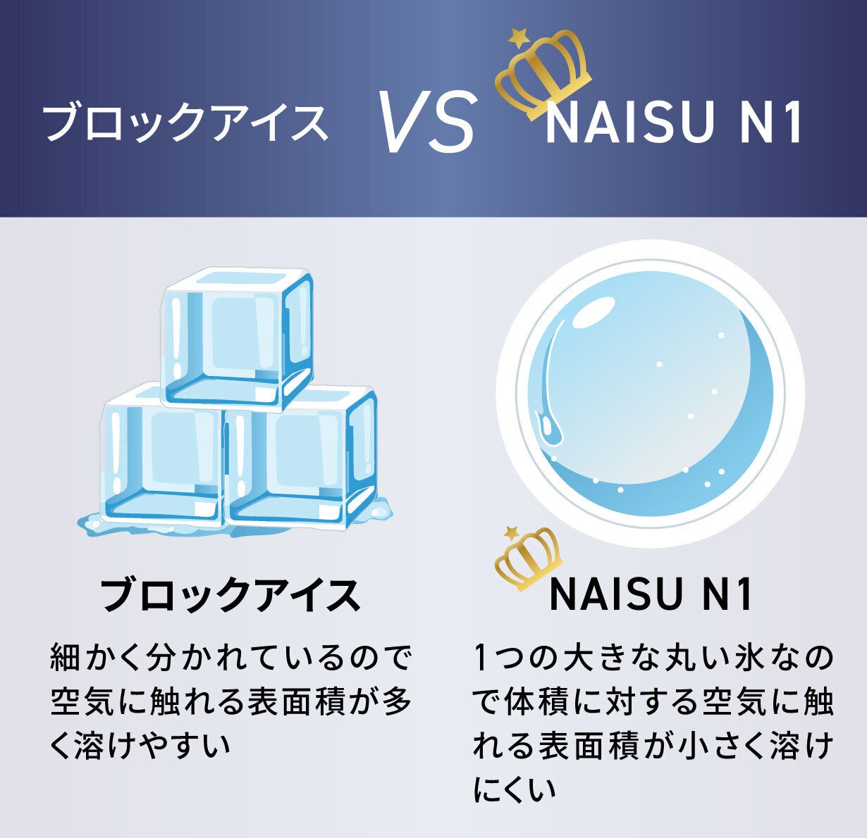 NAISU N1は、直径約6.5cmの丸氷を生成します。