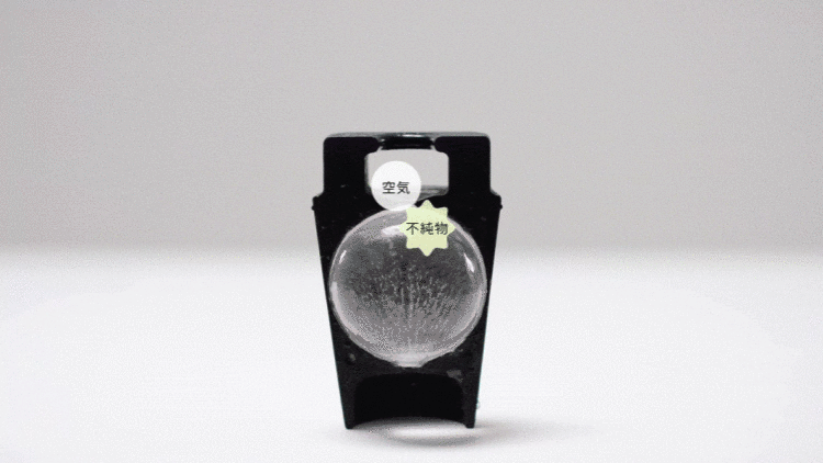 この革新的なプロセスにより、溶解したガスと不純物が除去され、見た目にも美しい丸氷が生まれます。