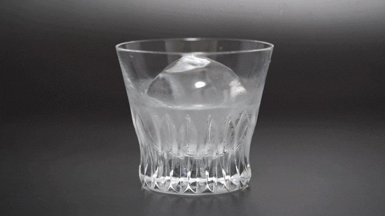割れを防ぐためには、氷に液体を注ぐ前に、2分間程度テーブルの上のグラスの中に氷を置き、氷を温めることが重要です。表面の霜が消えればOKサインです。