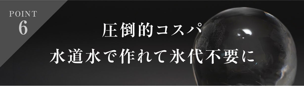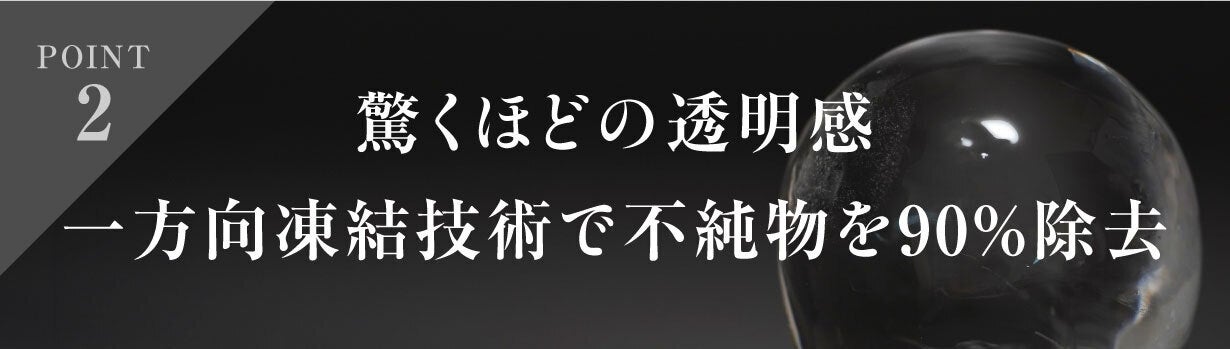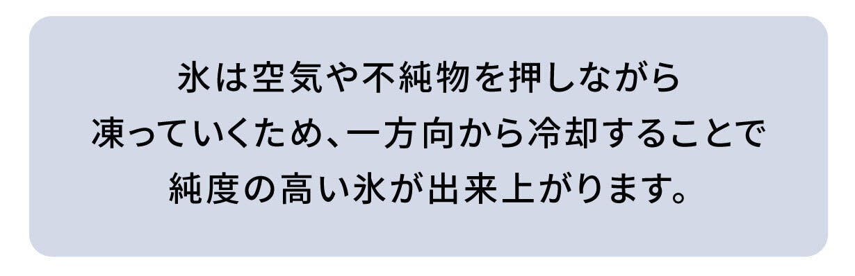 元々の水についた不純物も押し出しながら氷が出来上がるのでお酒の味を損なわない純粋な氷に仕上がります。