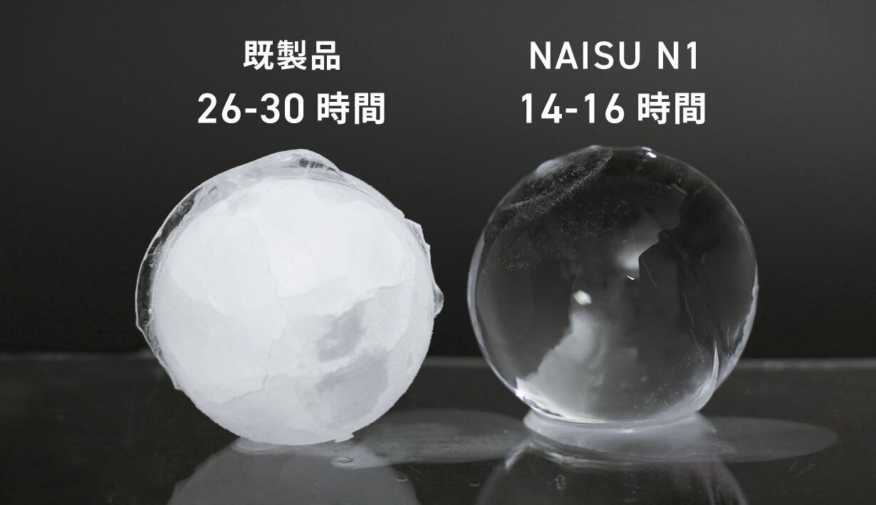 NAISU N1 は、方向性凍結を活用して、非常に透明な丸氷を作り出します。