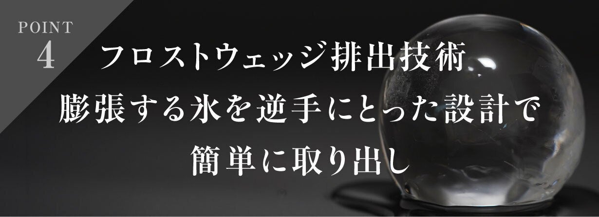 当社独自のフロストウェッジ技術と便利なツイスト機構により、氷球の取り外しも簡単です。