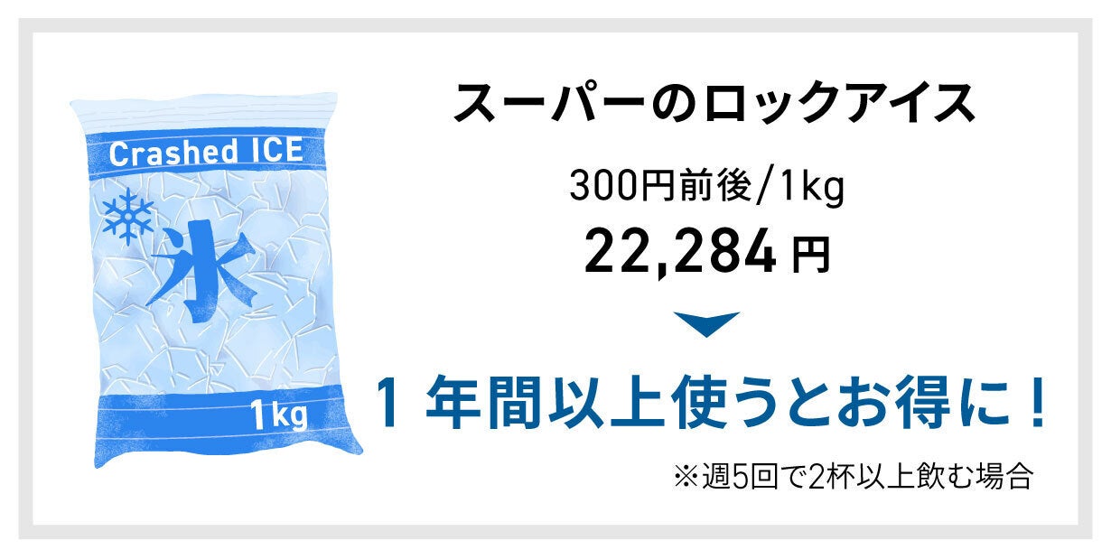 ただ、中々専門店で丸氷を買っている人はそこまで多くはなく、スーパーのロックアイスを買っている人がおおいのではないでしょうか?ロックアイスでも300円/kg前後かかってきます。