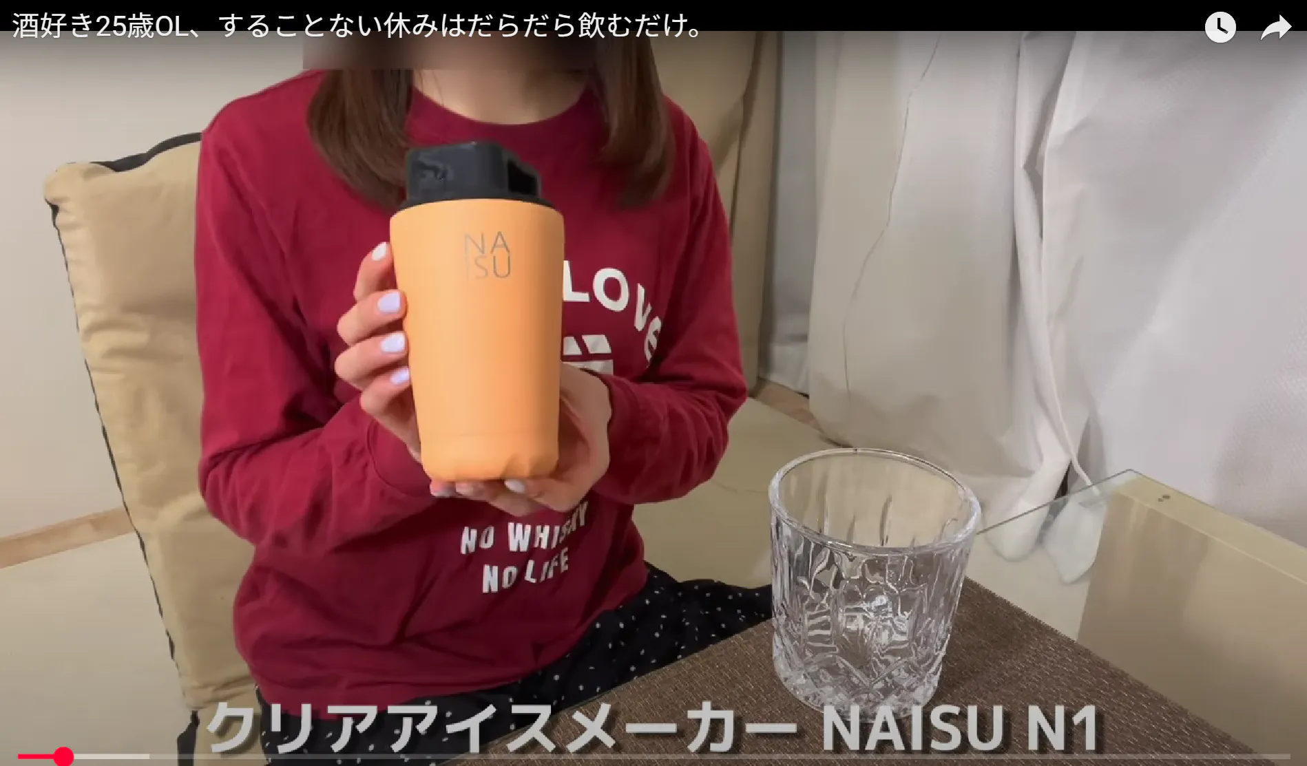 紹介していただいたのは「Peach Fuzz(ピーチファズ)」カラー。 あんらいさんも「ドンピシャな色!」と大絶賛。さらに、丸氷を6個ストックできるアクセサリーのシリコンバッグ「NAISU バッグ」についてもご紹介いただきました。