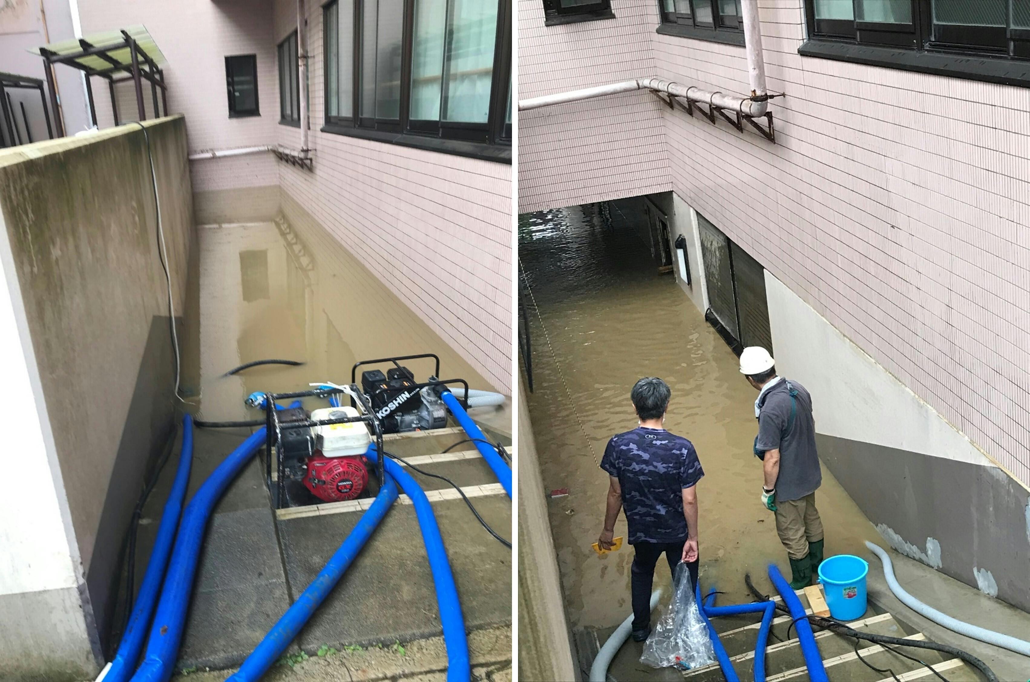 〈地下室の設備・機器はすべて泥だらけに〉〈連日の泥だしと清掃作業〉