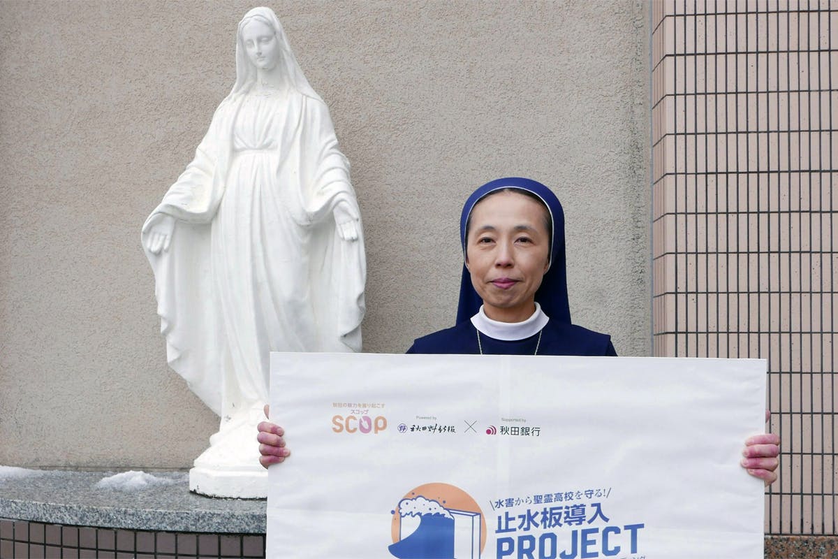 秋田県内唯一のキリスト教の理念に基づくミッションスクールとして、聖霊学園高等学校は、1908年にオランダから派遣された5名のドイツ人修道女(シスター)によって創立されました。以来116年にわたり、カトリック精神「愛と奉仕」を根底に、次世代を担う女性の育成に力を注いできました。私たちが大切にしているこの学び舎は、地域の方々や卒業生にとっても「希望」と「成長」の象徴であり、未来への財産です。しかし、2023年夏の豪雨はその学びの場に深刻な危機をもたらしました。
