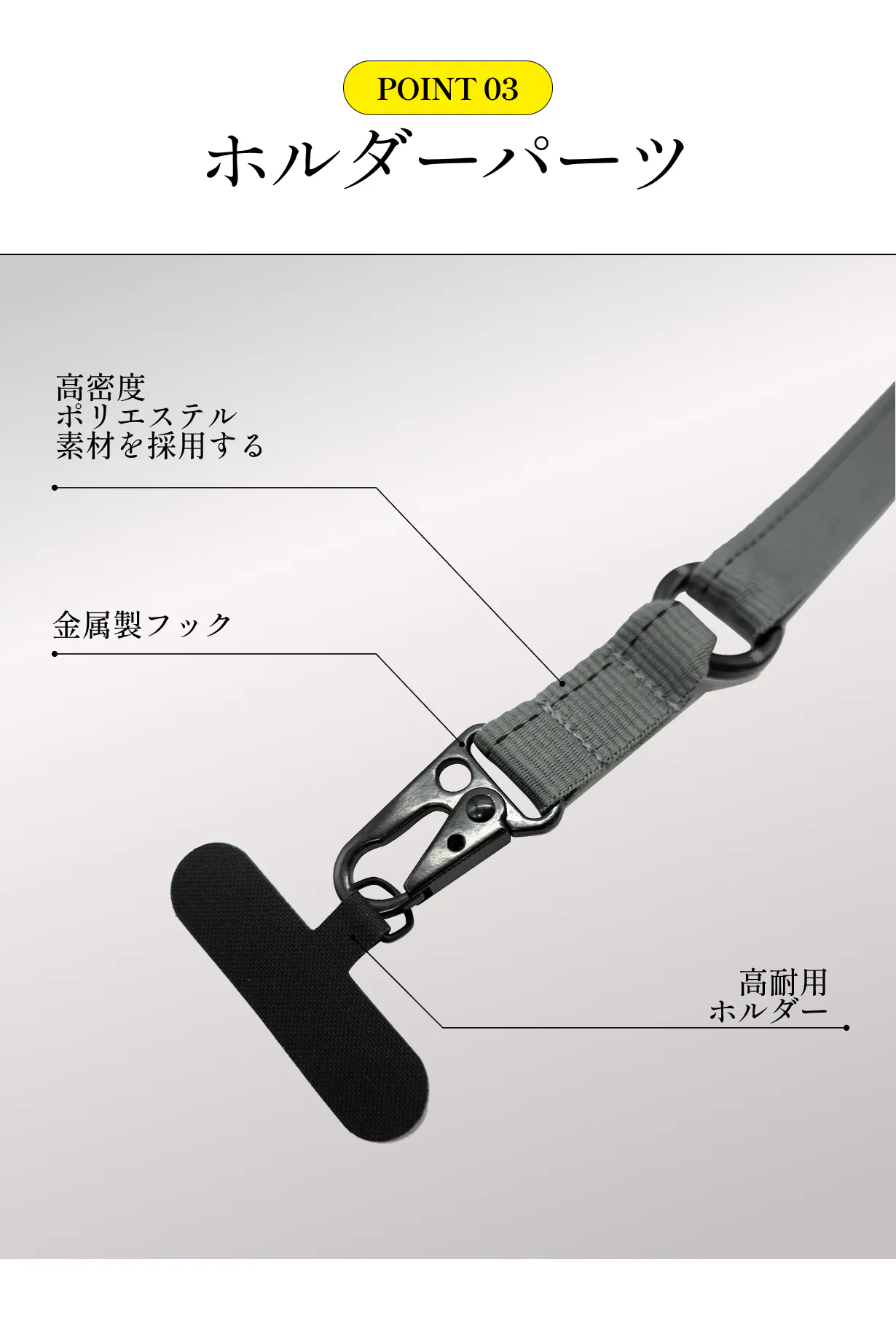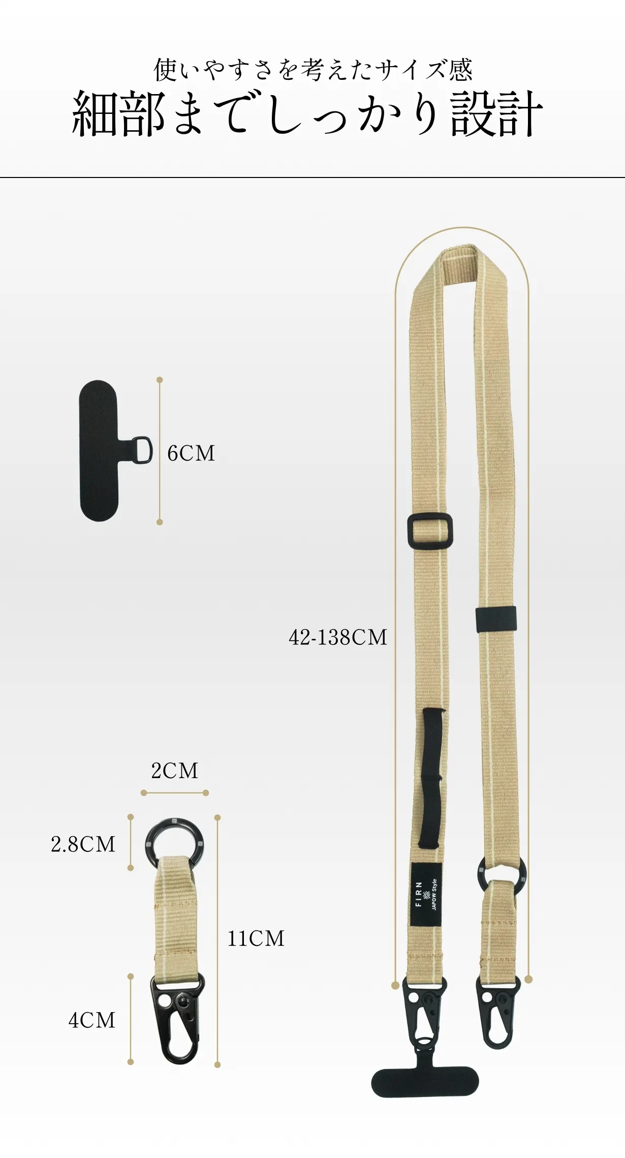 いただいたフィードバックをもとに、機能性・耐久性・デザイン性の3要素を徹底的に見直し、日常使いからアウトドアまで幅広く活躍するストラップを目指して、改良を重ねてまいりました。