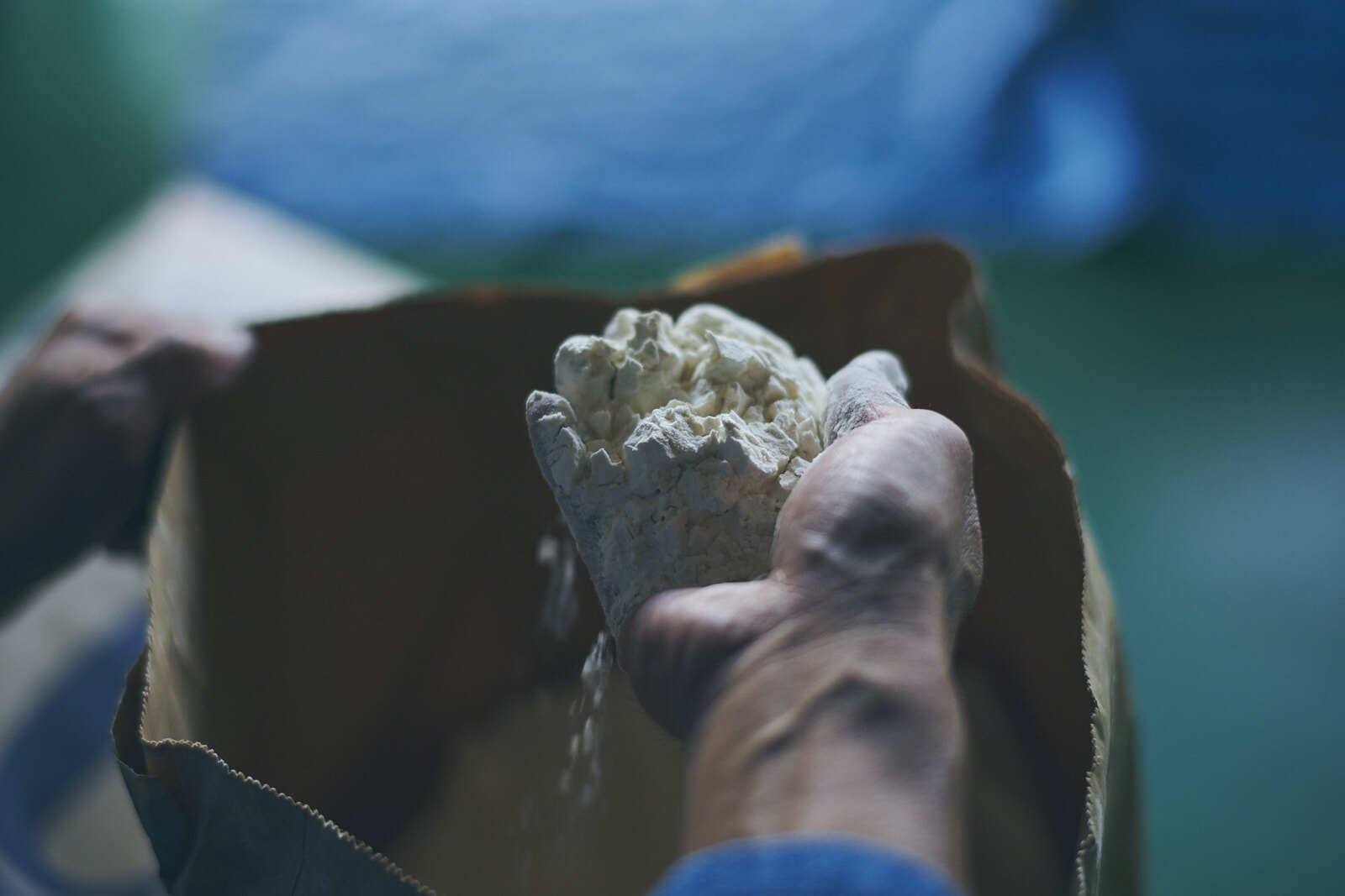 まずは次の日の天気、温度、湿度を見極めて、適した塩加減で塩水をつくり、早朝3時に起きて、捏ねて、寝かせて、延ばして、また寝かせて、延ばして、、、