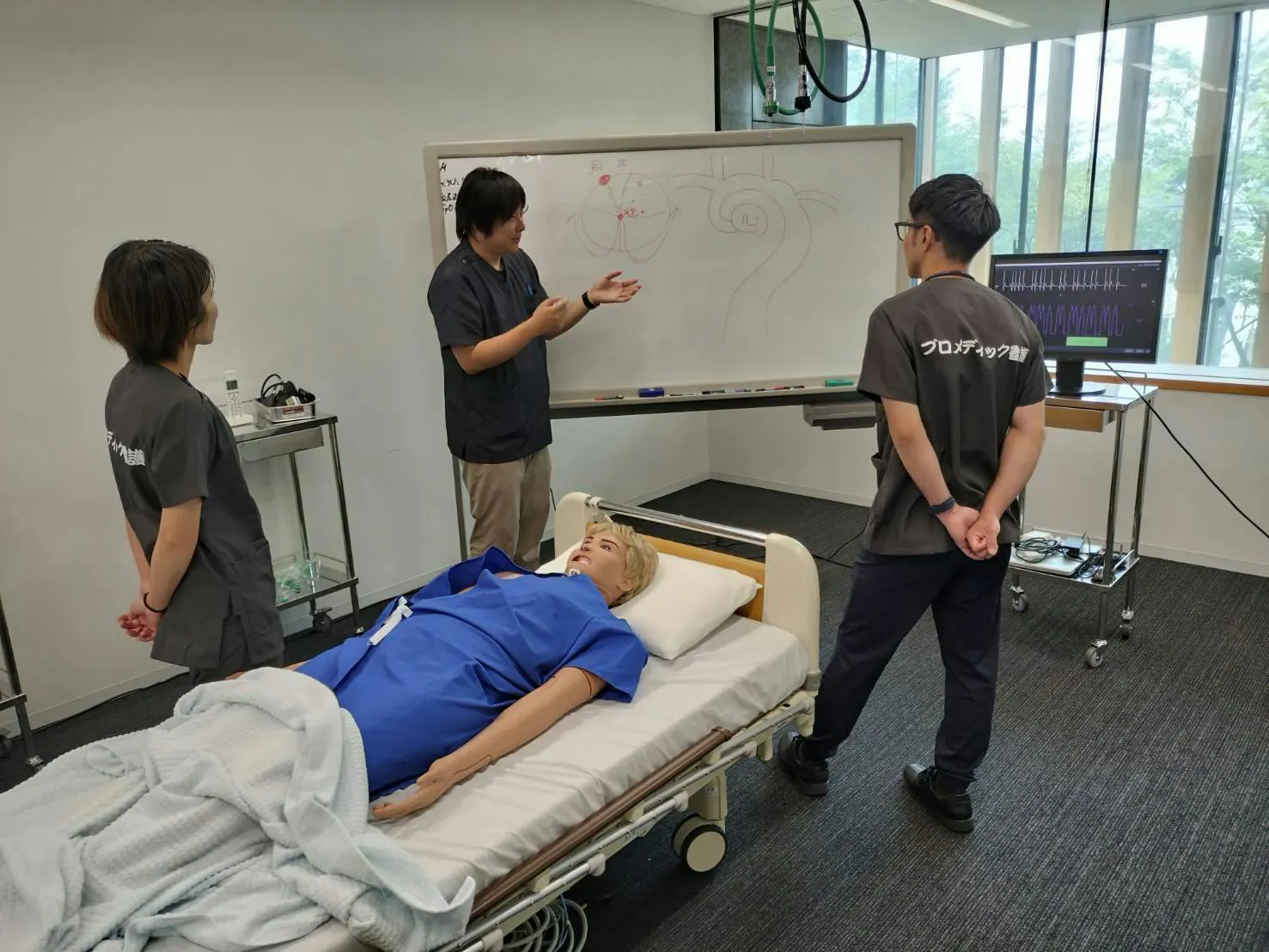 様々な事態を予測して対応できるよう定期的な勉強会を行っています。専任講師による状況設定課題取組中