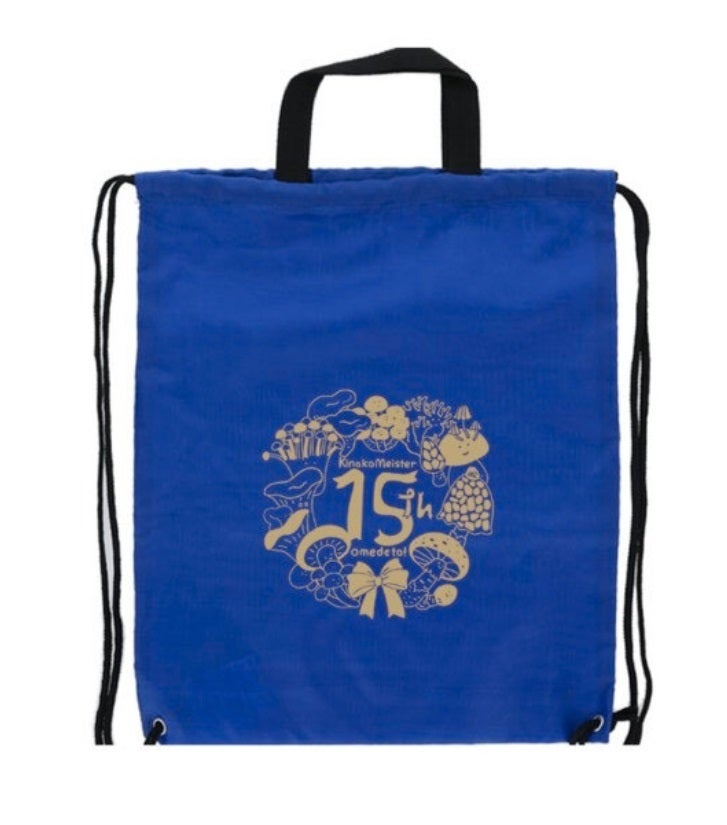 ・記念品の制作:15周年を記念した「きのこイラスト入りオリジナルリュック」を制作。