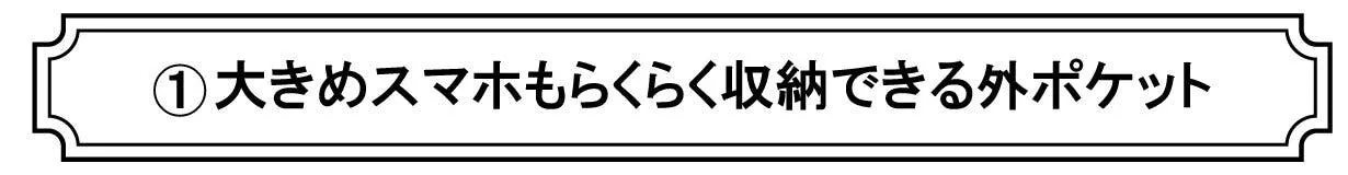バッグの中からスマホを慌てて探す!そんな経験はどなたもお持ちだと思います。私共では今回もスマホを取り出しやすくするために外ポケットに大きめのポケットを付けました。大きめスマホも手早く出し入れしやすい構造になっております。 iPhone14 Pro MAXまで収納可能です。 通常の手帳型ケースも収納できます。