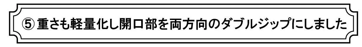 ファスナーは両方向に開閉できるYKKのダブルジップファスナーを 採用致しました。