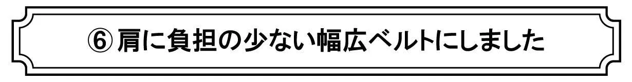 今回、より肩に負担の少ない幅広のショルダーベルトを採用しました。