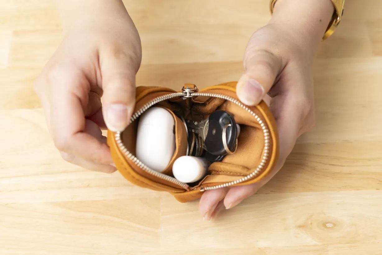 *キー、リップ、小銭、ワイヤレスイヤホンを入れています。