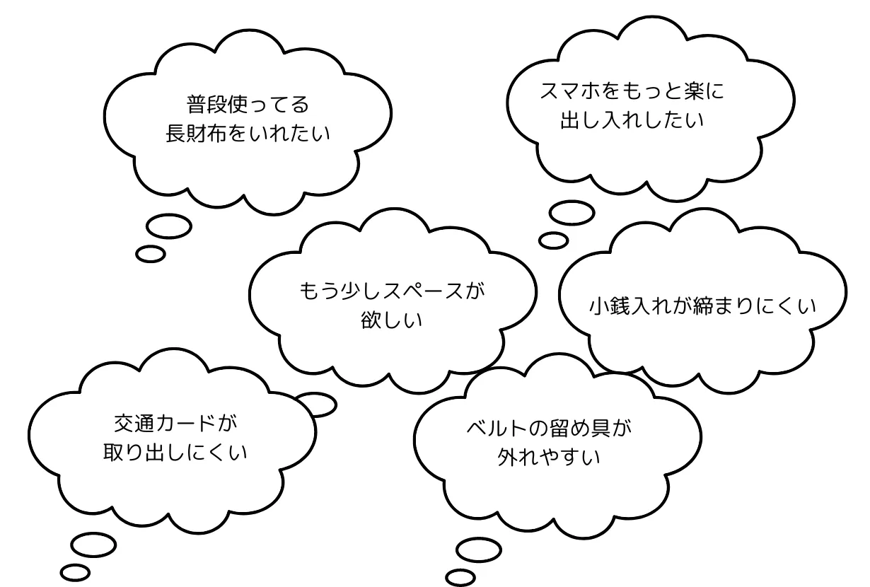 今回のプロジェクトについて考えたのがバッグを取り替える時に一番面倒に感じる事は何だろうという事でした。
