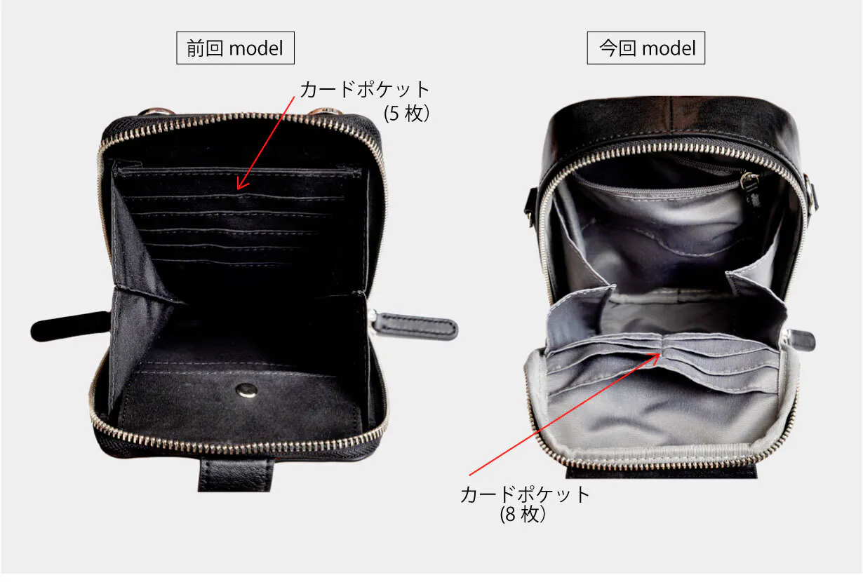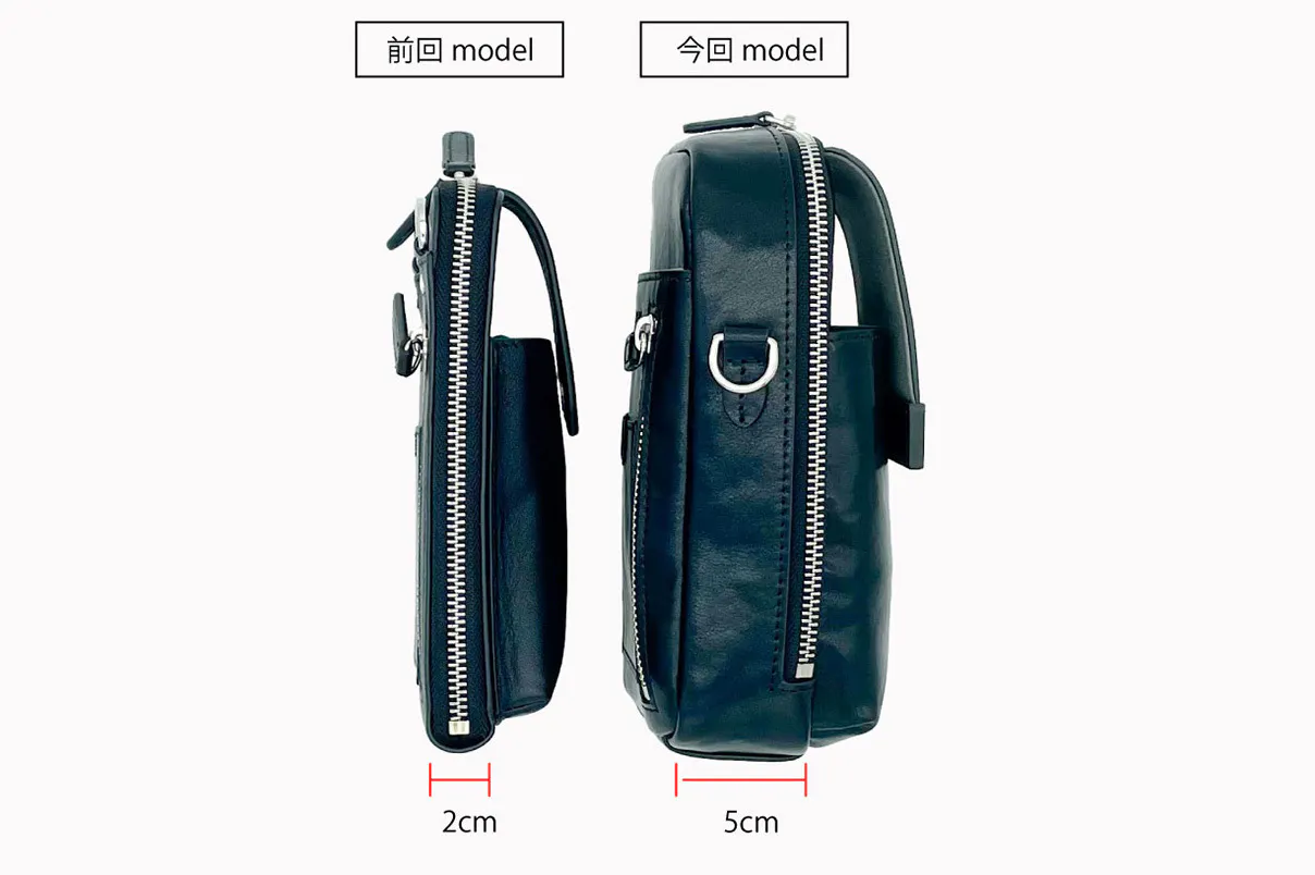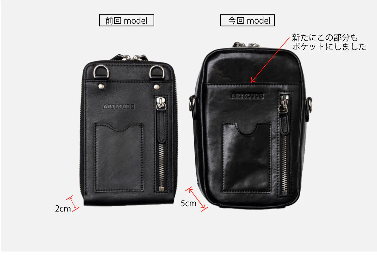 皆様方のご意見を参考にさせていただき新しい「大人が持ちたい大容量本革スマホポーチ」を完成させました。