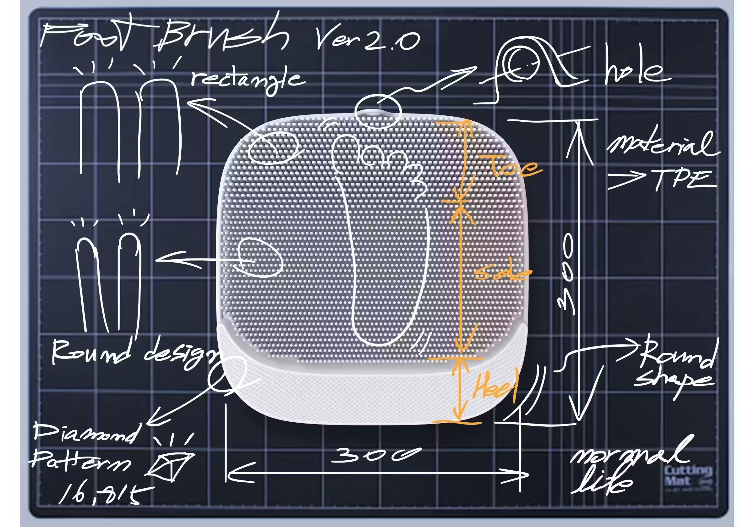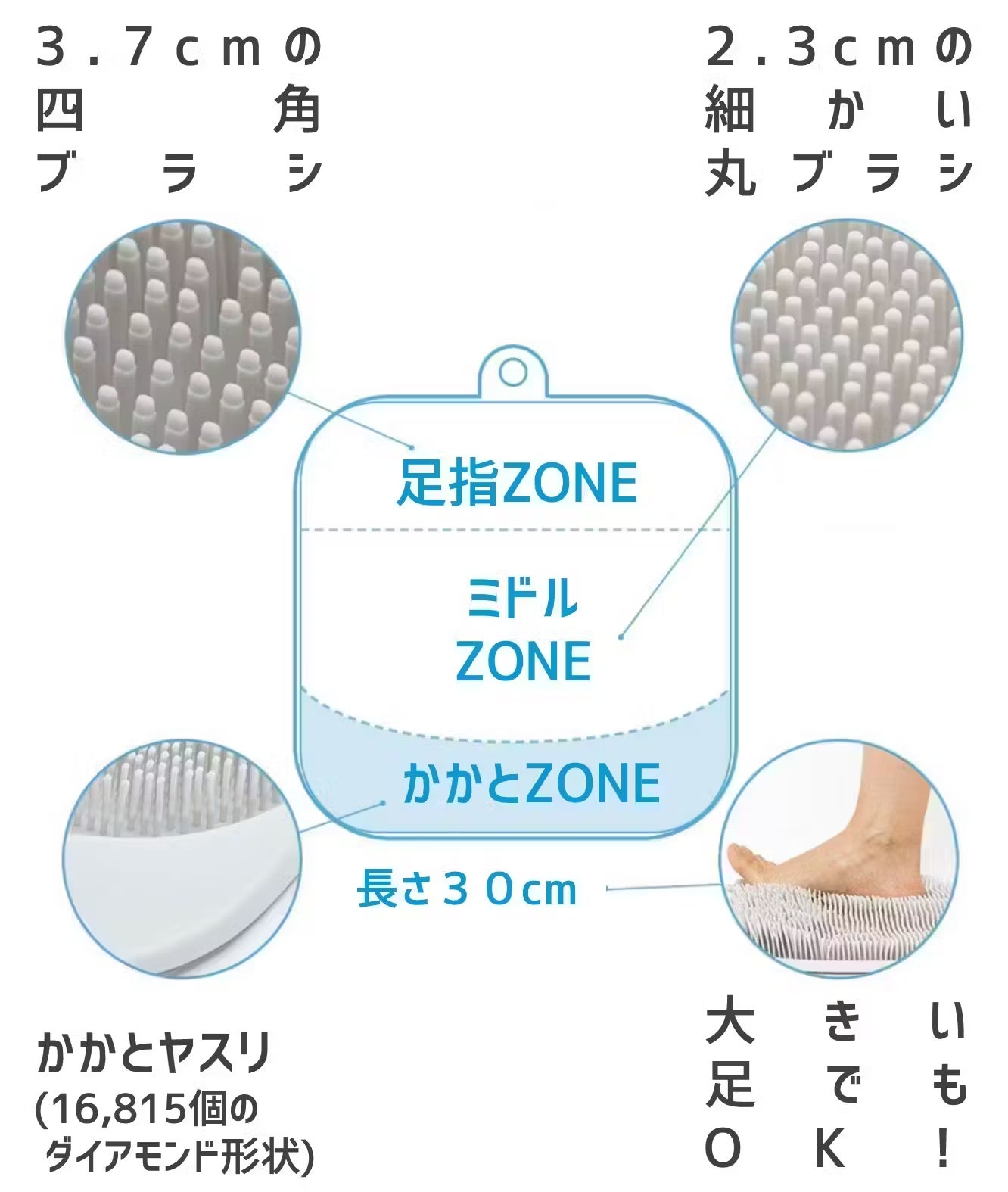 今回のプロジェクトでは、フットブラシが新たにVer.2にアップグレードされました。新しいかかとヤスリは、溜まっていたかかとの汚れがもっとキレイに流してくれます。