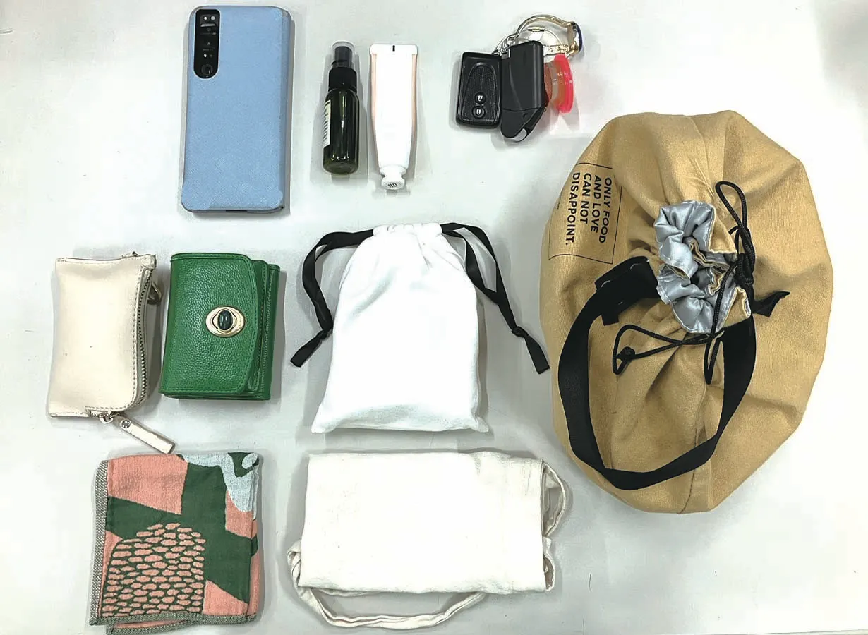 携帯・消毒スプレー・ハンドクリーム・鍵・ミニポーチ・財布・巾着・
