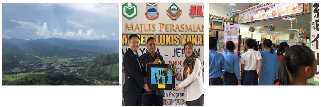 2023年11月サバ州での展覧会が復活しました。日本からも作品持参し3名の理事が渡航し、現地協力員とともに、州図書館局・教育相サバ州教育局タンブナン地方教育事務所の共催日馬展覧会は、2019年以来の実施ということで、ニュースタイムに国営テレビ局にニュース番組で全国に配信されました。図書館局はHPで両国の作品をonlineアップして世界に発信しています。