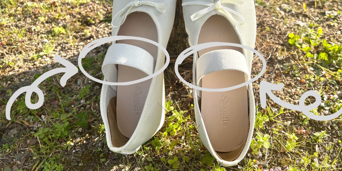 が、今回の「TABIバレエ」は代表的なバレーシューズ同様、甲の真ん中部分に「リボン」を付けました。