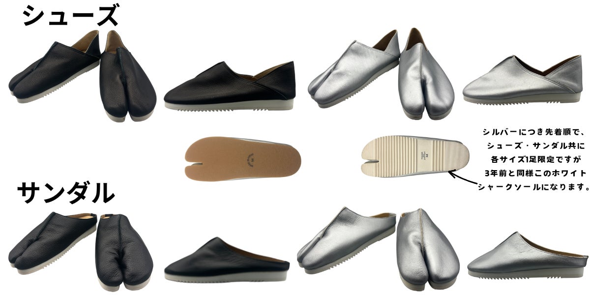 ※アウトソールは、シルバーにつき先着順で、シューズ・サンダル共に各サイズ1足限定ではありますが、3年前と同様のホワイトシャークソールになります。