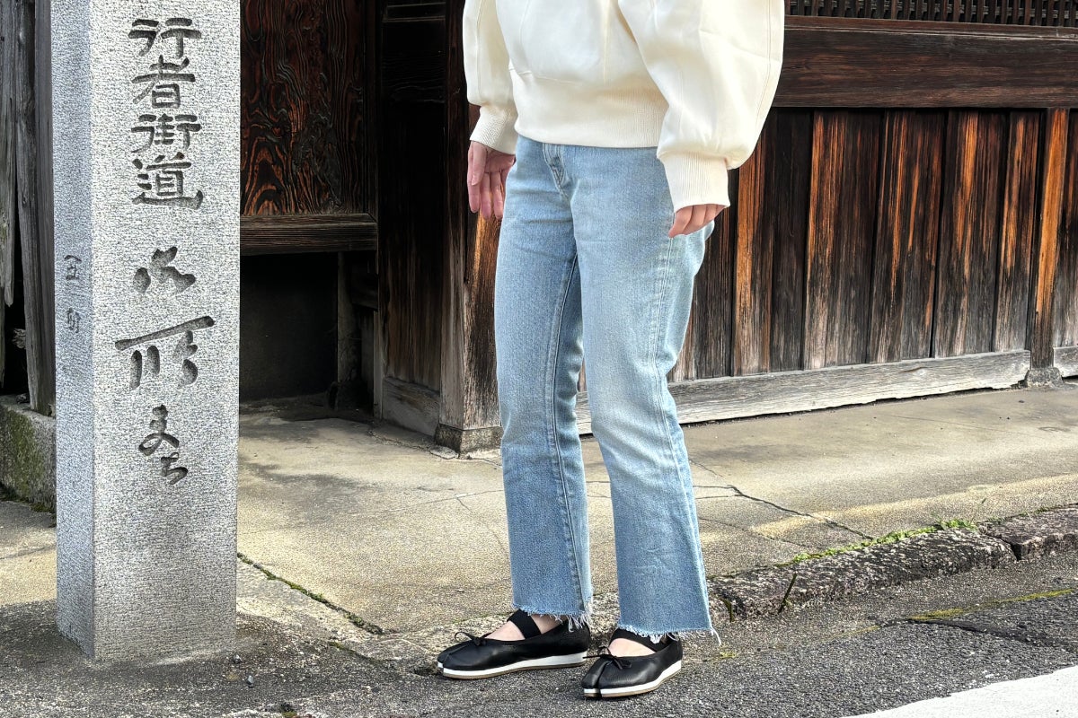 23.5 と 24.5 の2サイズをお店に展示させていただいていますので試履きできますよ。