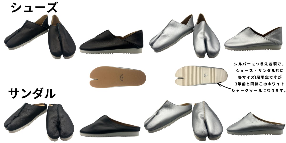 ※アウトソールは、シルバーにつき先着順で、シューズ・サンダル共に各サイズ1足限定ではありますが、3年前と同様のホワイトシャークソールになります。